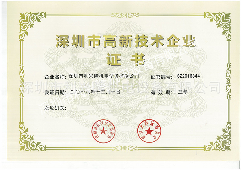 喜報!喜報!2017年利興隆機(jī)電迎來開門紅:功夫不負(fù)有心人,利興隆機(jī)電用8年的努力與沉淀,在自動清洗的技術(shù)研發(fā)及制造積極投入與實(shí)踐,終獲深圳科創(chuàng)委的認(rèn)可,成為了深圳市高新技術(shù)企業(yè)的一員,這一證書的獲得,是深圳市政府對我公司技術(shù)和研發(fā)實(shí)力的極大認(rèn)可;為公司廣大客戶提供了信心保證,增強(qiáng)了員工的積極性;有助于提升我司科技創(chuàng)新能力和行業(yè)競爭能力;同時,標(biāo)志著利興隆機(jī)電的清洗技術(shù)和研發(fā)實(shí)力已經(jīng)邁向更高臺階;技術(shù)權(quán)威機(jī)構(gòu)的認(rèn)可,必將進(jìn)一步激發(fā)公司全員科技創(chuàng)新的熱情,進(jìn)一步增強(qiáng)以自主研發(fā)為核心的綜合創(chuàng)新能力,利興隆機(jī)電將在快速平穩(wěn)增長的軌道上繼續(xù)前進(jìn)。對此,我們利興隆人感到自豪,更多的是鼓舞,我們將不忘初心,擼起袖子繼續(xù)努力把利興隆建設(shè)得更好??!加油!