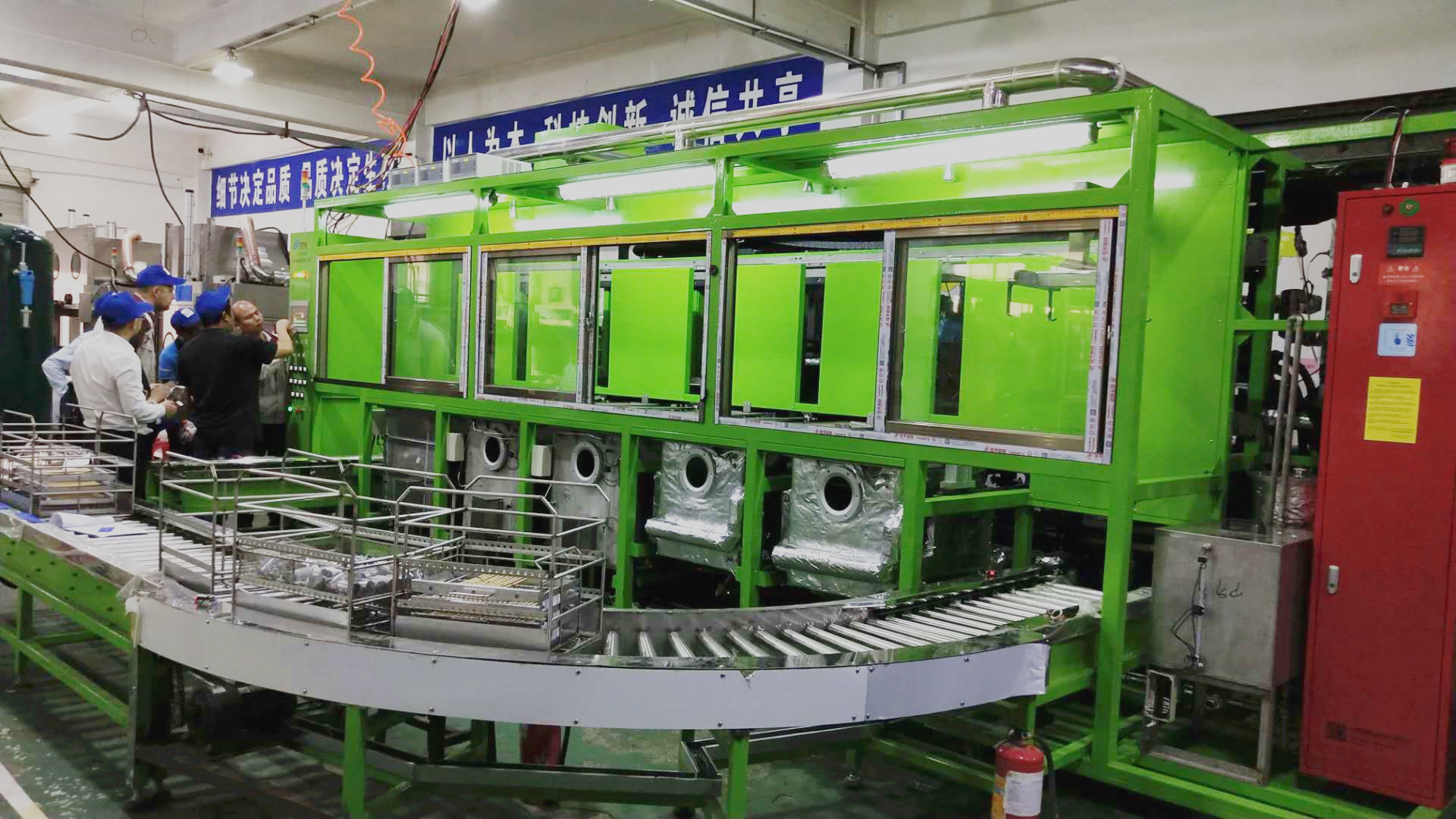 近日利興隆機(jī)電設(shè)備有限公司研發(fā)制作的全自動碳?xì)?object>超聲波清洗機(jī)經(jīng)過客戶驗收,該臺設(shè)備用于清洗精密五金零件,即將出口國外,投入使用!